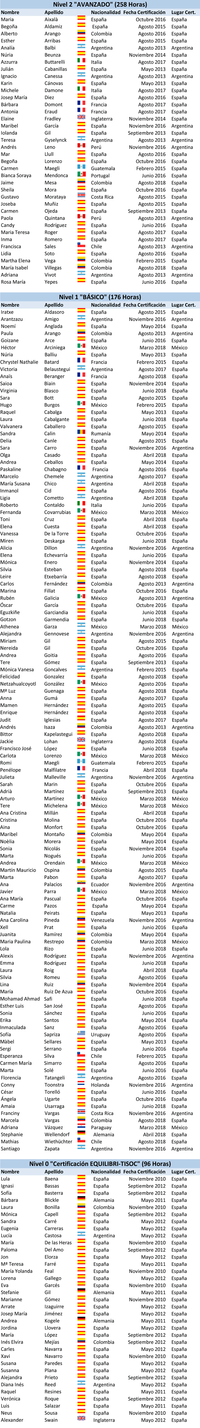 Abajo encontrarás todos los alumnos certificados hasta el momento por Equiilibri.